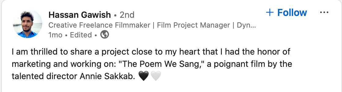 The Poem We Sang is an anthem to memory, resilience, and the dignity of a people grappling with injustice and brutality. Annie Sakkab’s remarkable and powerful short film premiered at Hot Docs 2024.