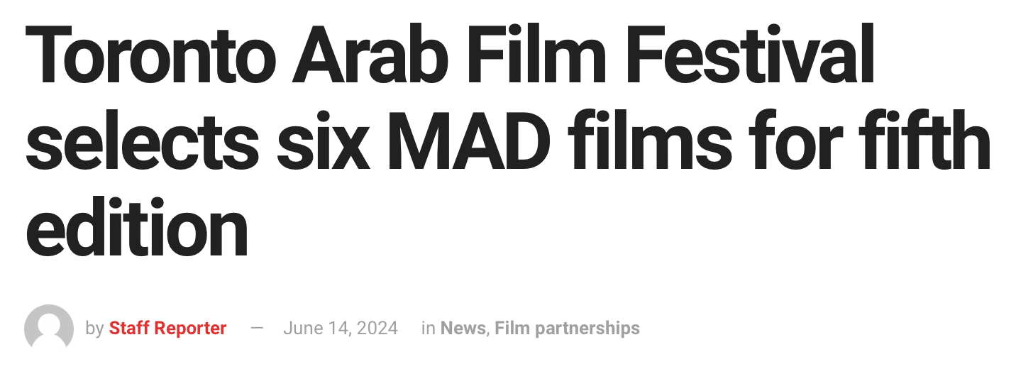 Toronto Arab Film Festival selects six MAD films for fifth edition